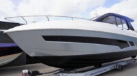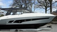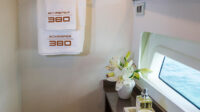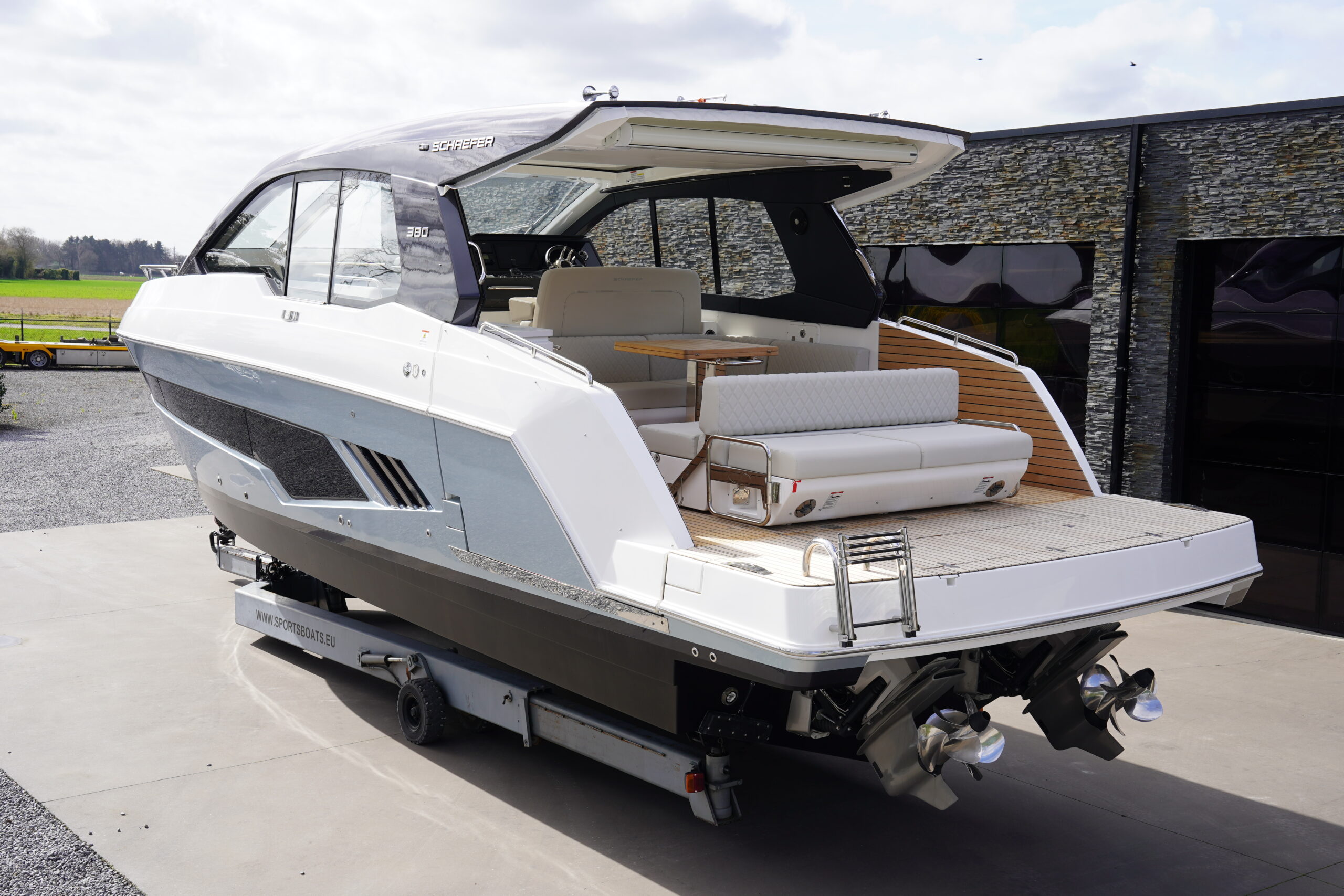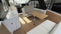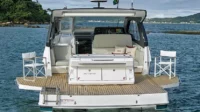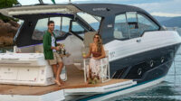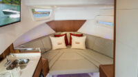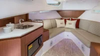 The Schaefer 380 has been redesigned to offer the amenities, sophistication and comfort also found in the larger models. Two balconies are standard on either side, offering more space for relaxing and entertaining. The hard top with its retractable roof offers plenty of sun or protection from the elements. Ample seating throughout the 380 with ease of access to the bow through the windshield walkthrough. The cabin sleeps four with aft and forward berths along with a full head with a separate shower, and a full galley.