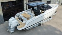 Like new nice white boat with black striping, powered by Twin verado V8 300HP.